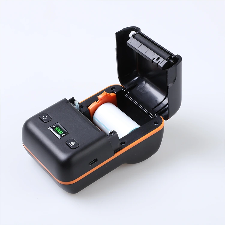 Tämä musteton tarratulostin on yhteensopiva tarrapaperin kanssa, jonka leveys on 25/30/40/50 millimetriä ja joka on saatavana useilla eritelmillä erilaisiin tulostustarpeisiin. Tätä tulostinta on mukavampi ja tehokkaampi käyttää erinomaisen akun keston, ääni- ja valomuistutustoiminnon, jos paperin puute tai epätavallinen tulostus, sekä suuren paperin säilytyskapasiteetin ansiosta. Matkapuhelin muodostaa yhteyden Bluetoothiin tulostamista varten ja tukee useilla kielillä tulostamista. Mini Bluetooth -tulostin tukee erilaisia ​​käyttöliittymän API-kehitysmalleja, kuten Android, Apple, Windows ja Linux.